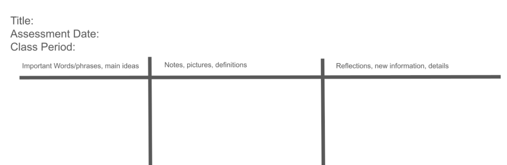 The following is an example of how this could occur in a classroom. This can work with any type of notes – guided notes, one column, two column, sketch notes, etc.