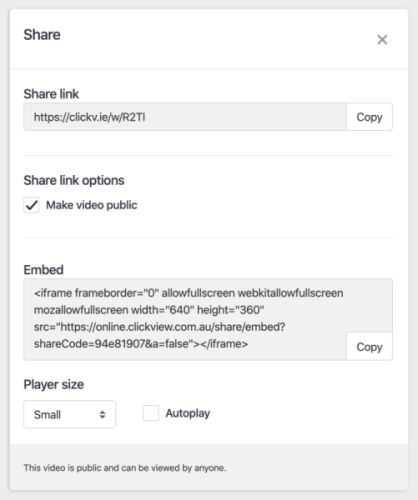 ClickView Administrators can now generate a public share link from any video title that they own in their libraries.