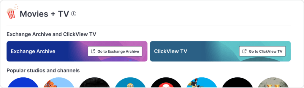 You can now find the Exchange Archive and ClickView TV, under the Movies + TV tab.