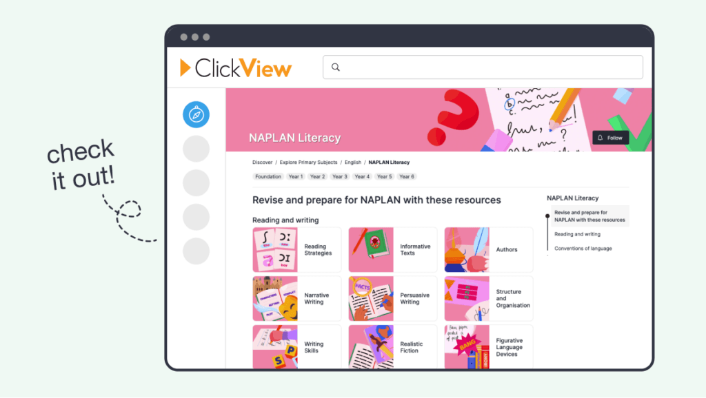 We have selected some of ClickView’s top Topics and videos to support teachers in recapping each NAPLAN strand with their students. Take a look, share it with your colleagues and let us know what you think.