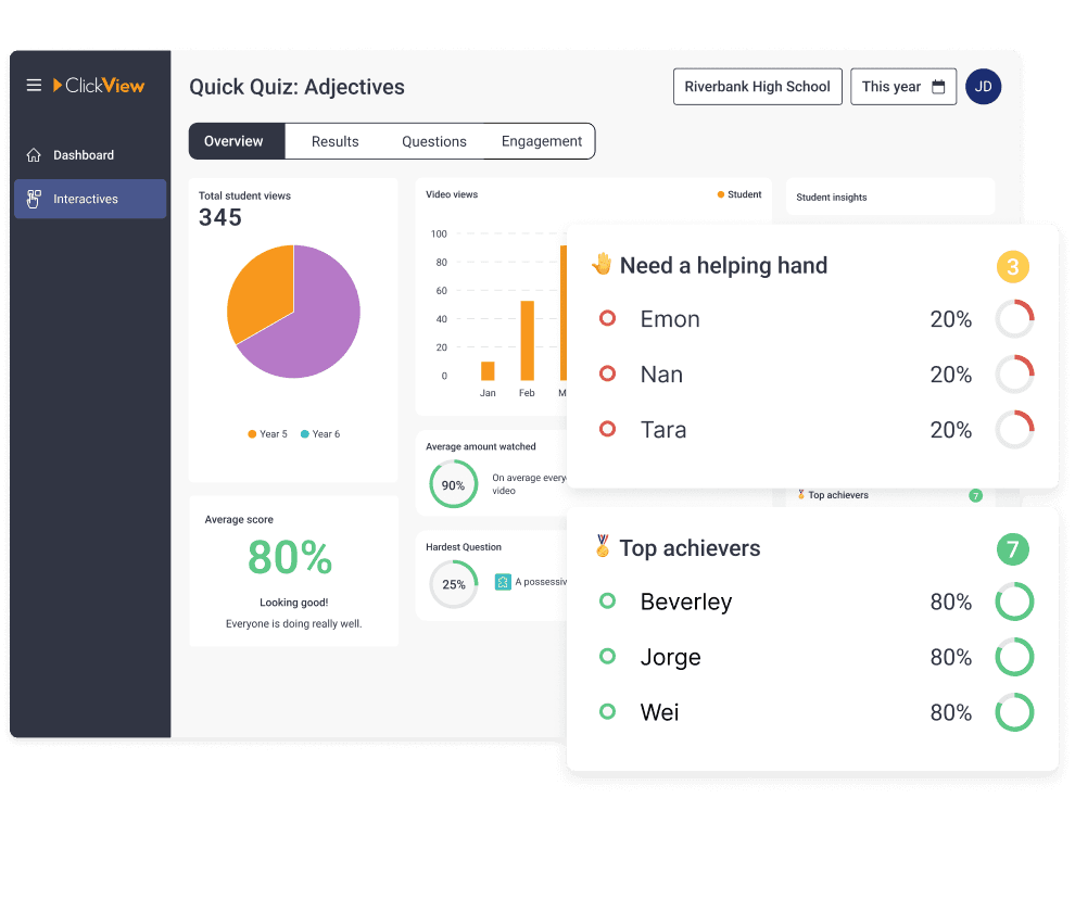 Classroom-ready interactive quizzes on every ClickView video, as well as the option for teachers to create their own.