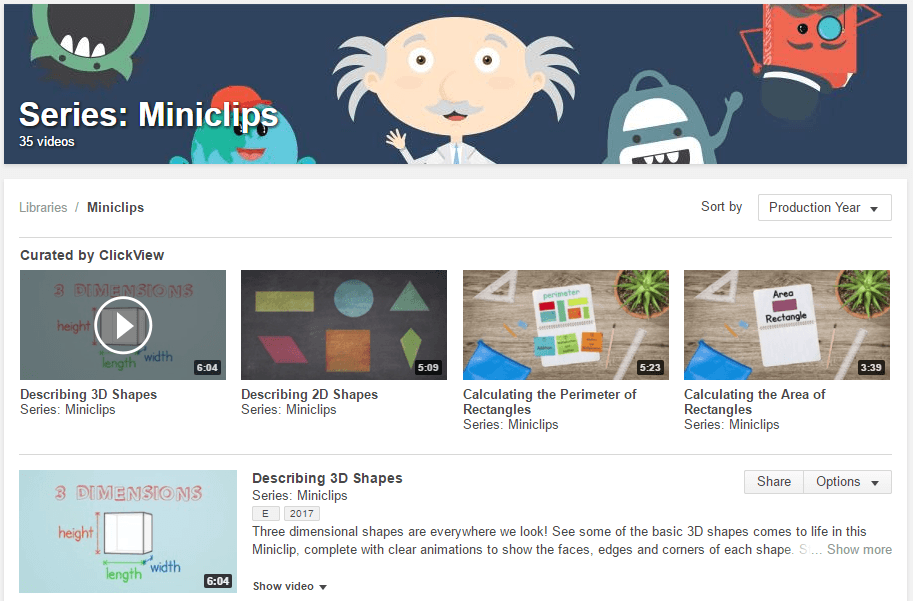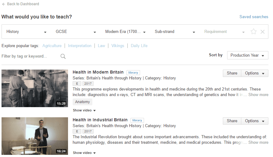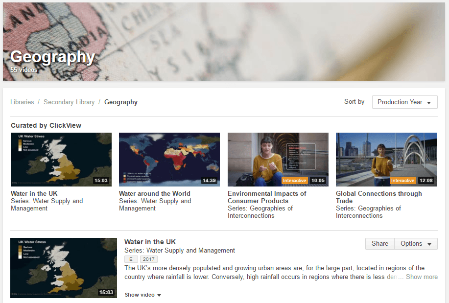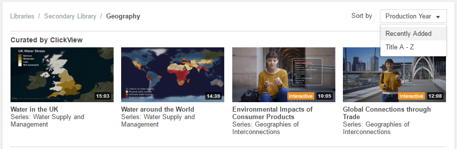 We understand that it’s important to find relevant, but also recently produced, videos to ensure you have the best content for your students. Therefore the videos within any subject collection are now displayed by production year, by default.