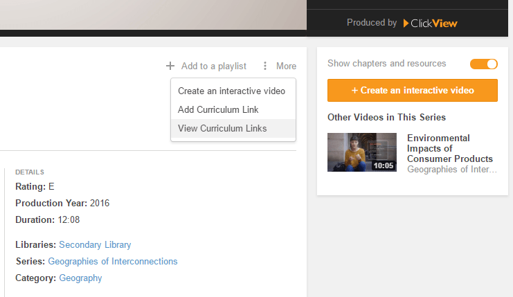 Now you can find the exact outcomes that any given ClickView Curriculum Library video is mapped to by clicking ‘View Curriculum Links’: