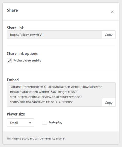 ClickView Administrators can now generate a public share link from any video title that they own in their libraries.