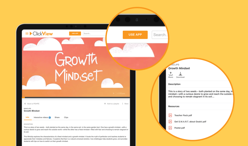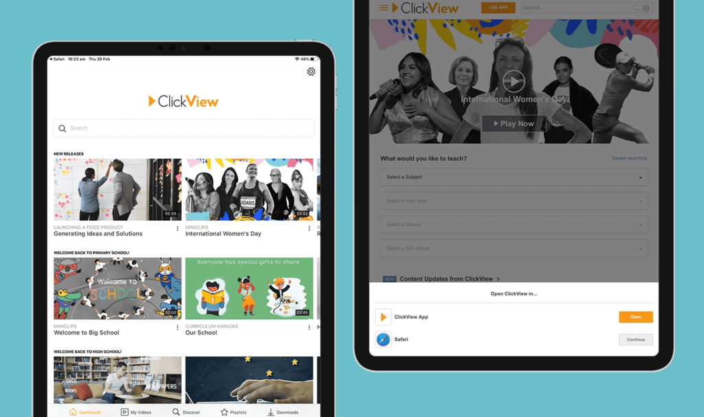 - If you’re an iPhone/iPad user on Safari, you can now open videos, clips and interactives in the ClickView App if you have it installed, by clicking on the banner. Download and install the ClickView App from the App Store.