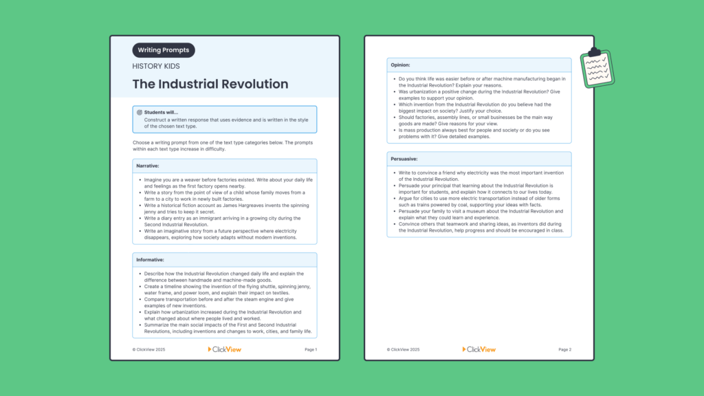 Try it with the video The Industrial Revolution from the History Kinds series.