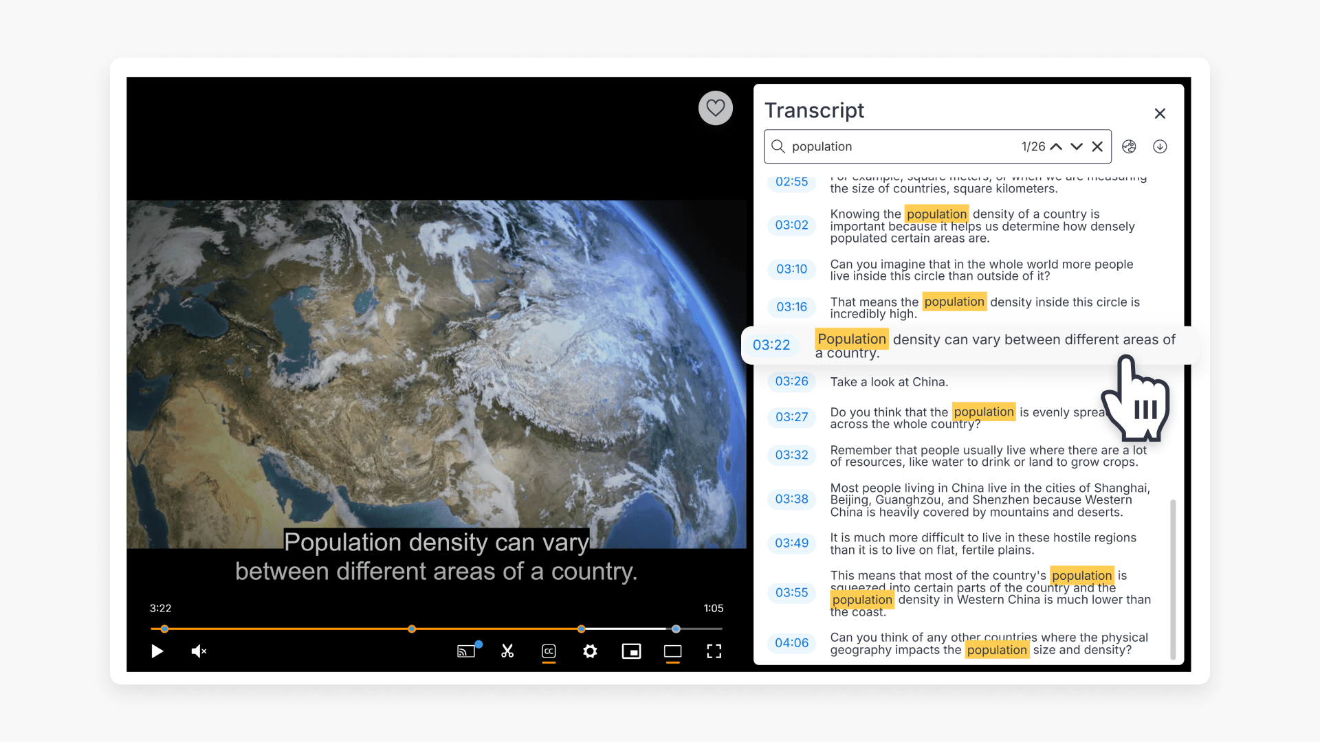 ClickView’s subtitle search lets you locate relevant content quickly: