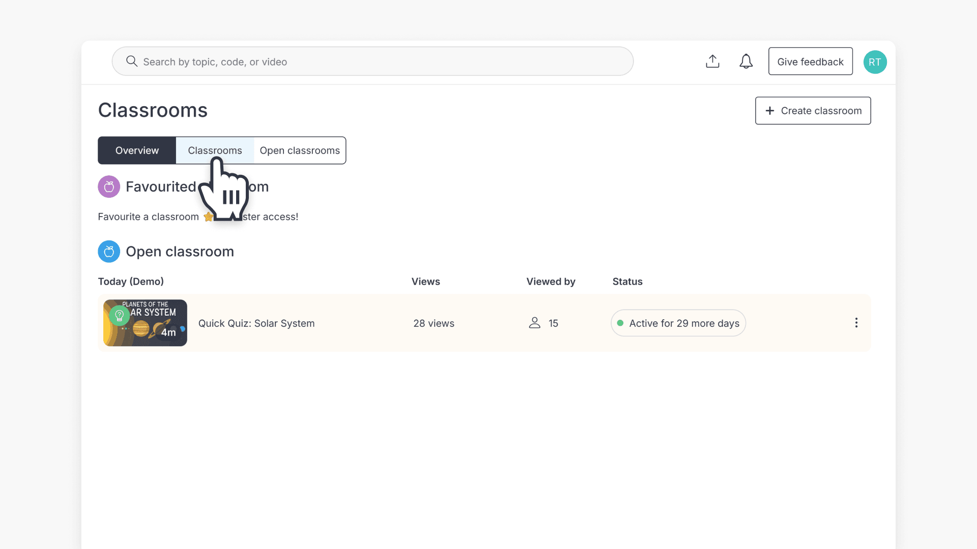 ClickView enables staff and admin users to create virtual classrooms to organize students and facilitate blended learning. You are automatically assigned as the owner when you create a new classroom and can invite additional staff members for content sharing.