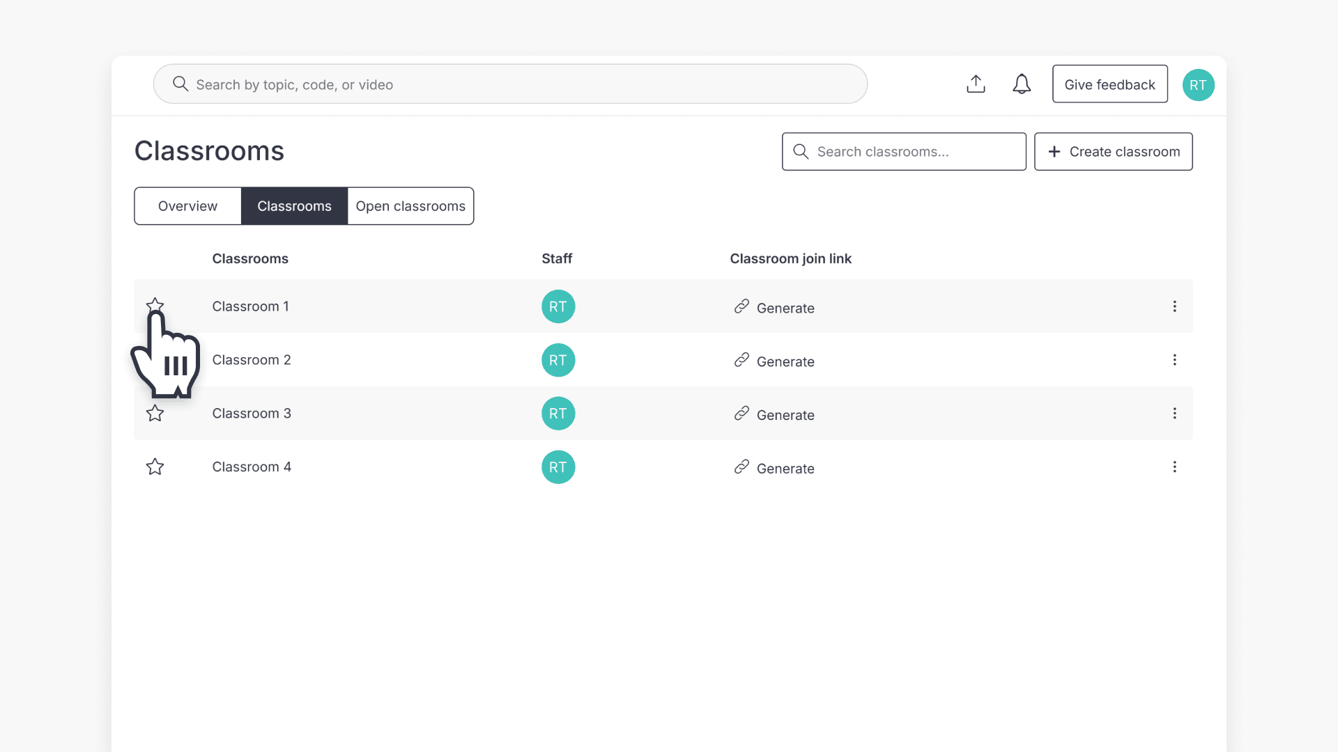- Click the star next to the classroom name.