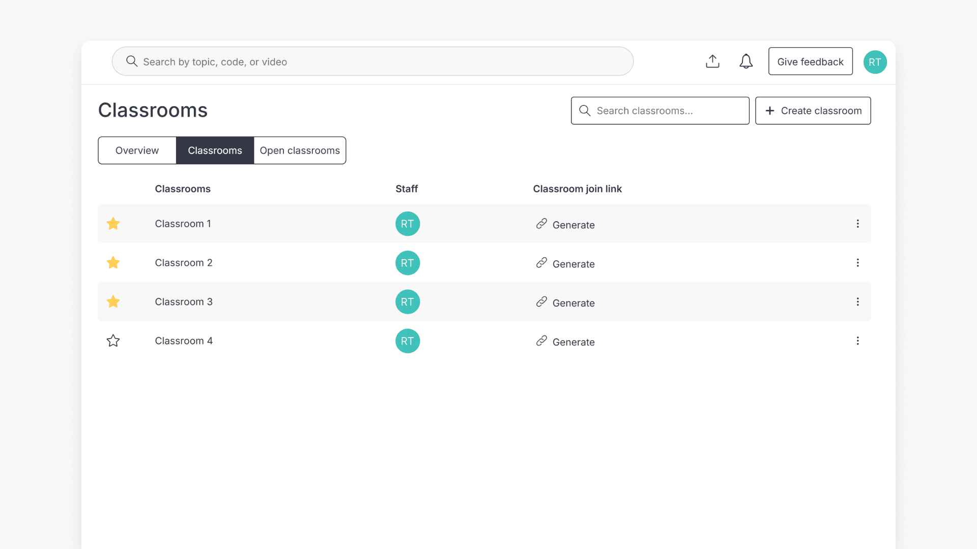 - Use ‘+ Create classroom’ to create and name a classroom.