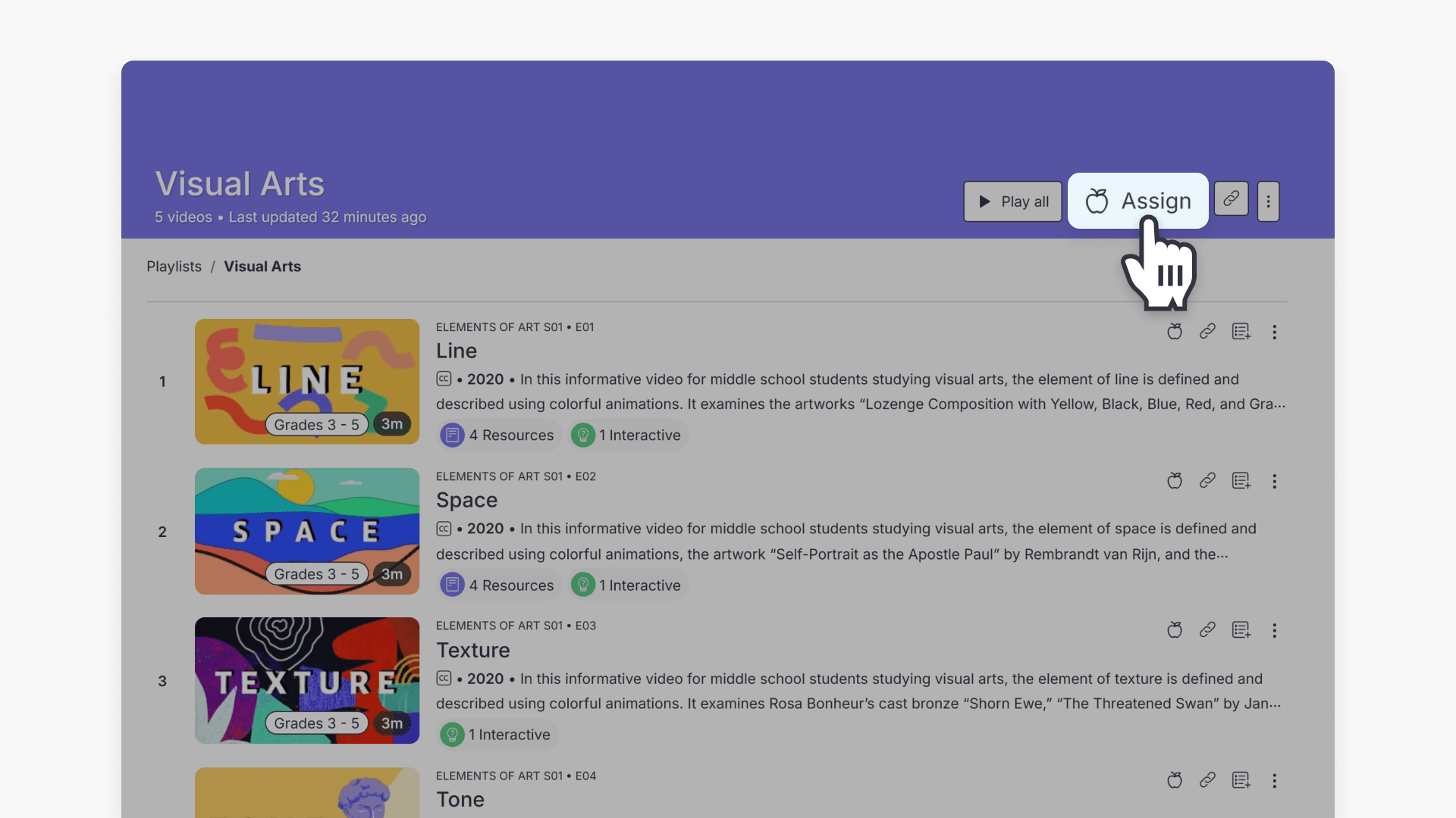 - Click the ‘Assign’ button at the top of the playlist page.
